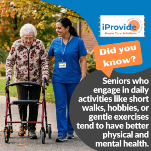 Daily activities, whether physical, mental, or social, play a key role in supporting healthy aging. Some simple ways seniors can stay active include: