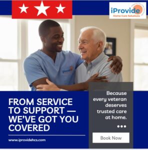 At iProvide Home Care Solutions, we are honored to continue the mission of service by supporting veterans with personalized care that promotes dignity, independence, and peace of mind.