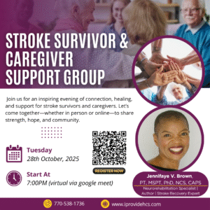 Join us for an inspiring Night of Hope, Healing & Connection, featuring Dr. Jennifaye V. Brown, PT, MSPT, PhD, NCS, CAPS — a distinguished neurorehabilitation expert with over 35 years of clinical experience in stroke recovery and author of Brace Yourself: Everything You Need to Know About AFOs After Stroke.